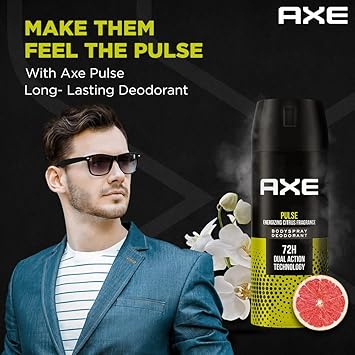 Axe Pulse body spray deodorant presents a range of deodorant bodysprays for men. Designed by the world’s leading perfumers, the Axe range of deodorant bodysprays not only helps you smell good but also keeps you fresh, clean and confident. Beat the heat and get a chilled start to your day with the Axe range of deodorant bodysprays. With fragrances released at -40 degrees, the Axe range of deodorant bodysprays instantly cools your skin by 6 degrees. With a ‘one press spray can’ it reaches all over your body. Spray it on your underarms, neck, chest and back and feel the freshness in every pore of your body.