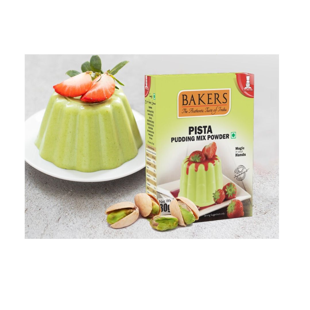 PISTA: Savor the nutty perfection of pistachio with Bakers Pista Pudding Mix. Available in an 80g pack, it's a true connoisseur's choice. The rich and savory pistachio flavor is a delightful departure from the ordinary. Whether you're savoring it solo or using it to create unique dessert experiences, this flavor adds a touch of nutty perfection to your culinary repertoire.