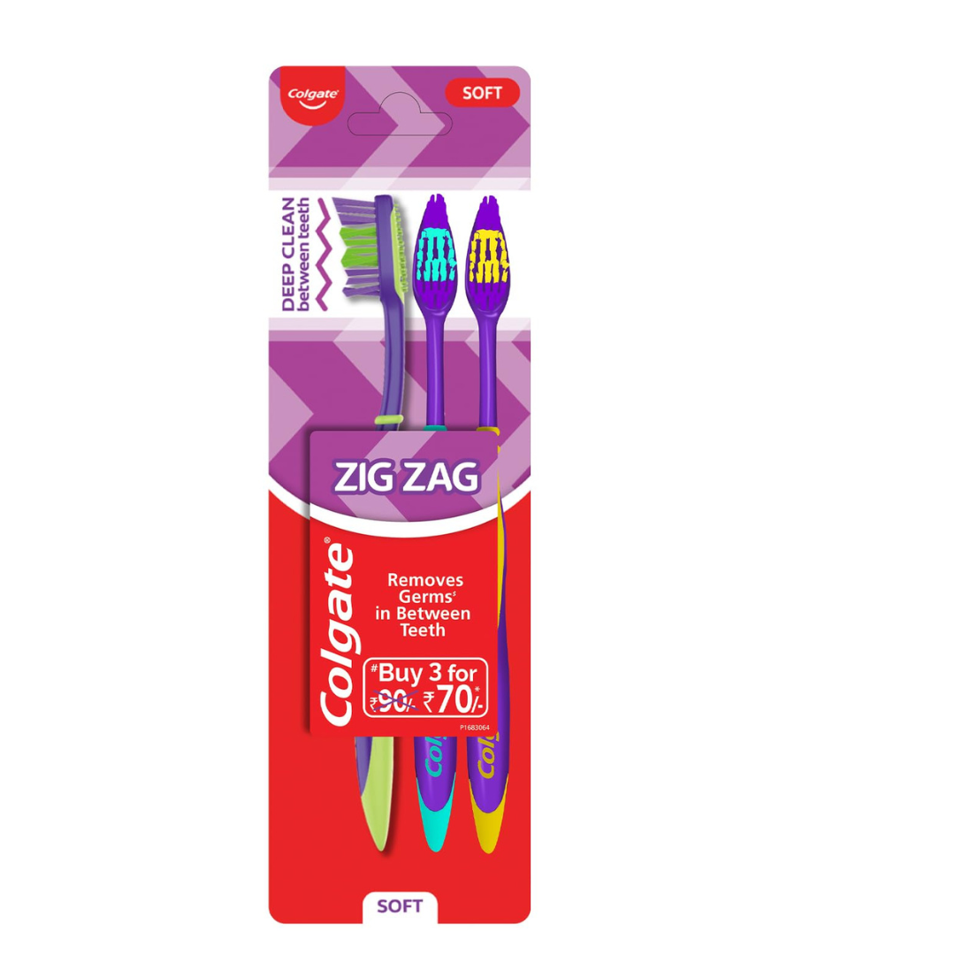 Colgate Zigzag Soft Bristle Manual Toothbrush For 3pcs-கோல்கேட் ஜிக்ஜாக் மென்மையான பிரஷ்