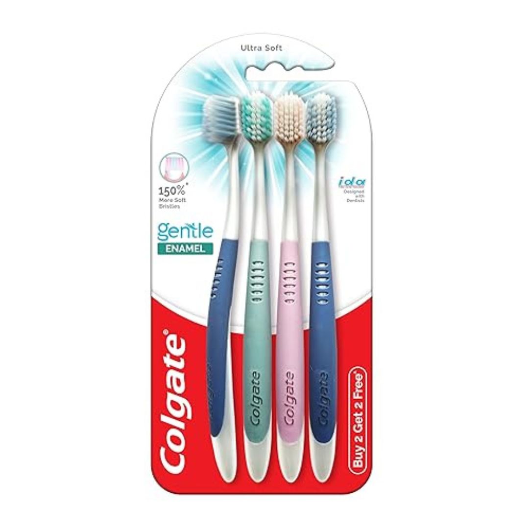 Colgate Gentle Enamel Ultra Soft Bristles Manual Toothbrush for adults, 4 Pcs (Buy2 Get 2)-கோல்கேட் ஜென்டில் எனாமல் அல்ட்ரா சாஃப்ட் டூத் பிரஷ்,