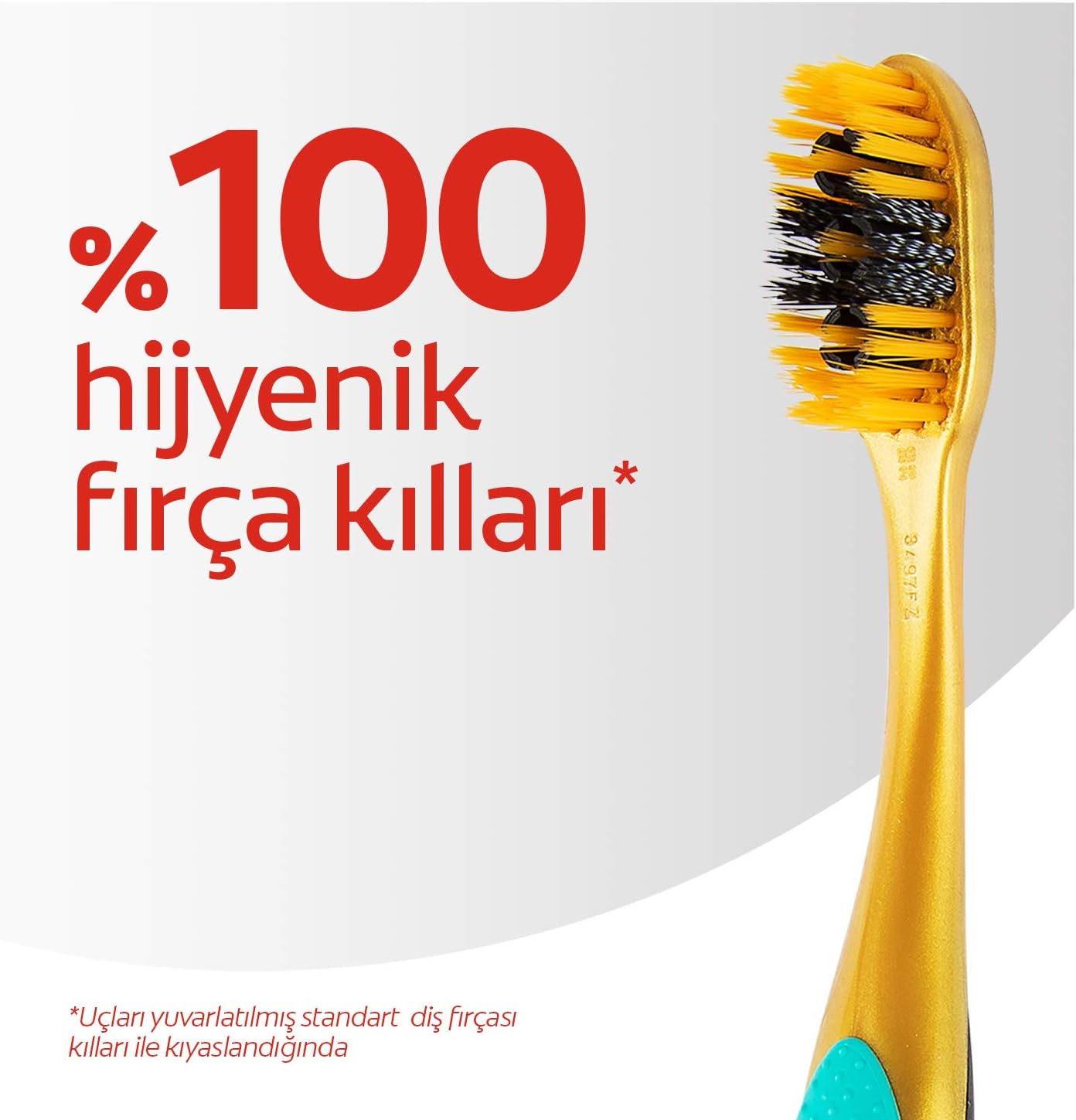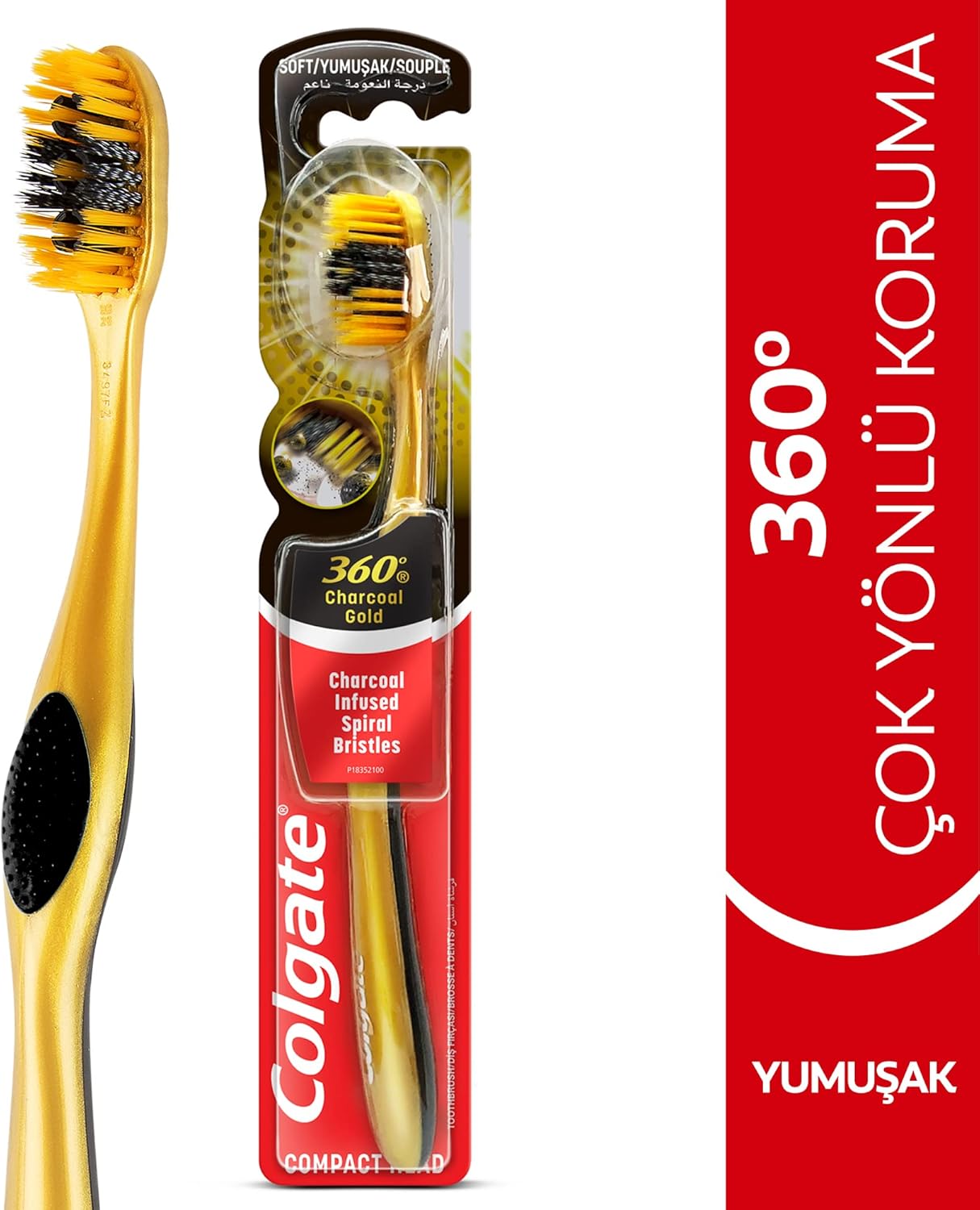 Bring home the ‘gold’ standard in toothbrushes with Colgate 360 Charcoal Gold. Its charcoal infused soft bristles work to remove bacteria and provide deep yet gentle cleaning. With specially designed 17x slimmer tip bristles, it reaches deeper in between the teeth and effectively cleans along the gum line for an overall deep mouth clean. Its spiral bristles help remove stains for brighter teeth every day.