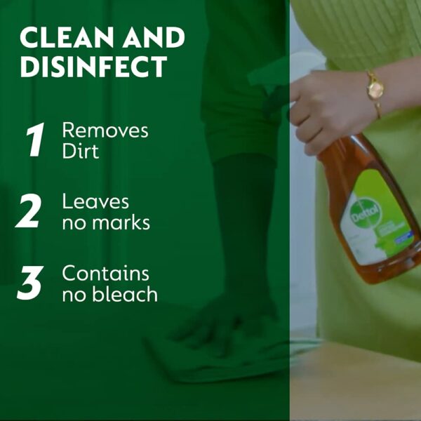 Dettol germ protection: this unique cleaning + disinfection product gives dettol germ protection in a new convenient format. Recommended by Indian Medical Association (IMA) Effective disinfection: this antibacterial spray disinfects surfaces and kills germs and viruses Effective cleaning: the spray liquid removes dirt, contains no bleach, and leaves no mark on surfaces All-purpose use: can be used as a kitchen cleaner, bathroom cleaner, or multipurpose household cleaner. safe to use on food contact surfaces; Easy to use: the convenient spray and wipe format makes it fast and easy to use Surface Recommendation: Floor