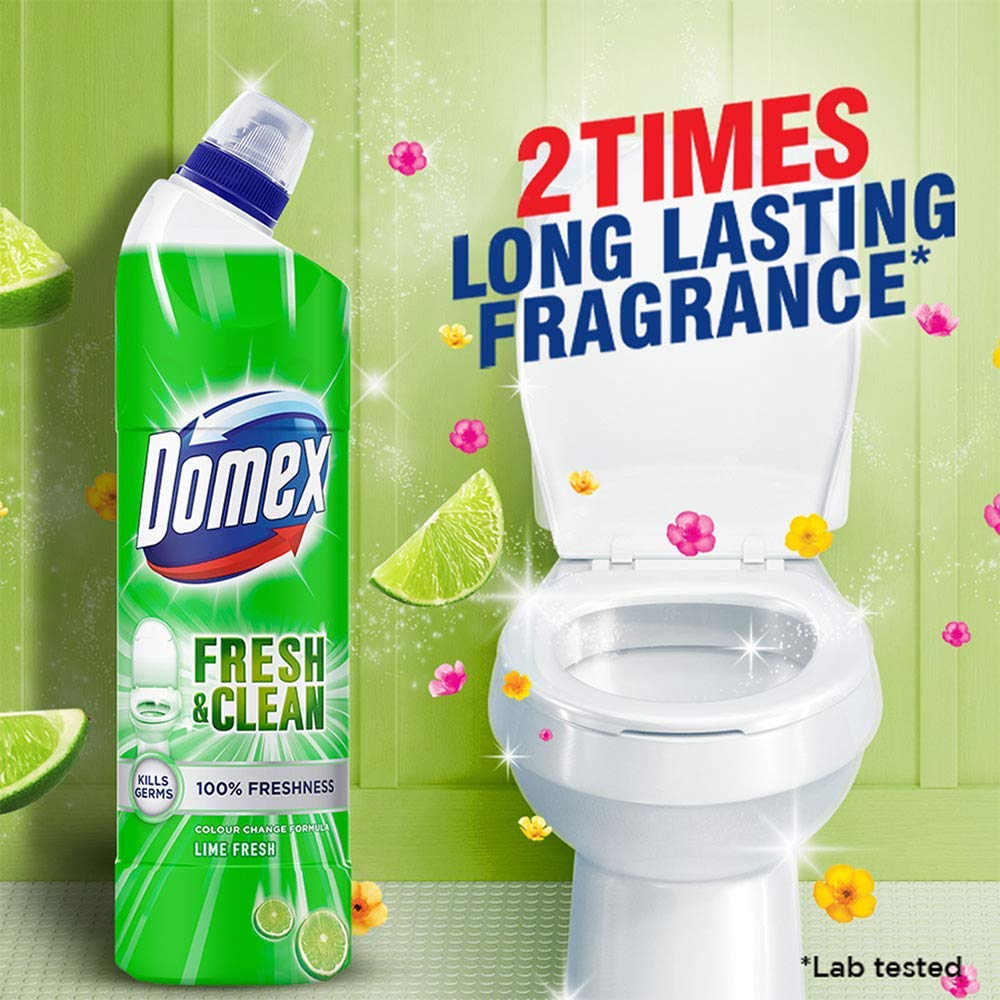 Domex Lime Fresh Toilet Cleaner with active green formula kills all germs including bacteria, virus and fungi which live on the surfaces in your toilet. … Domex Disinfectant Expert Toilet Cleaner is recommended for daily use to keep your toilet clean, disinfected, fresh and safe.
