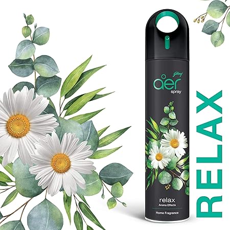 • Godrej aer spray - Room freshener Spray (220 ml). Variant - Relax REFRESHING FRAGRANCE: Inspired by the relaxing woody fragrance with hints of amber and patchouli CONVENIENT TO USE: Easy push and spray mechanism designed for convenience LONG-LASTING FRAGRANCE: Makes every surface smell amazing for long USE ANYWHERE: Bedroom, Living Room, Workspaces and Public Spaces