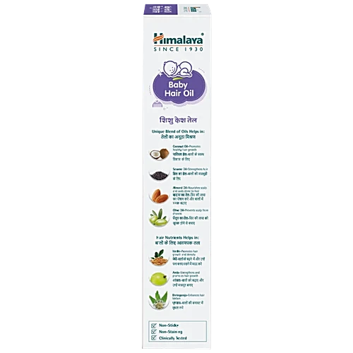 • Himalaya Baby Hair Oil is meticulously designed to meet the specific needs of your precious little ones. Enriched with the goodness of Amla, Gotukola, and Bhringaraja, this specially formulated oil provides optimal nourishment to nurture your baby's hair, leaving it soft, lustrous, and healthy. Himalaya's commitment to natural and safe ingredients ensures that you can trust this gentle and effective hair oil to care for your baby's delicate scalp and promote the overall well-being of their hair. Give your baby's locks the love and attention they deserve with Himalaya Baby Hair Oil.