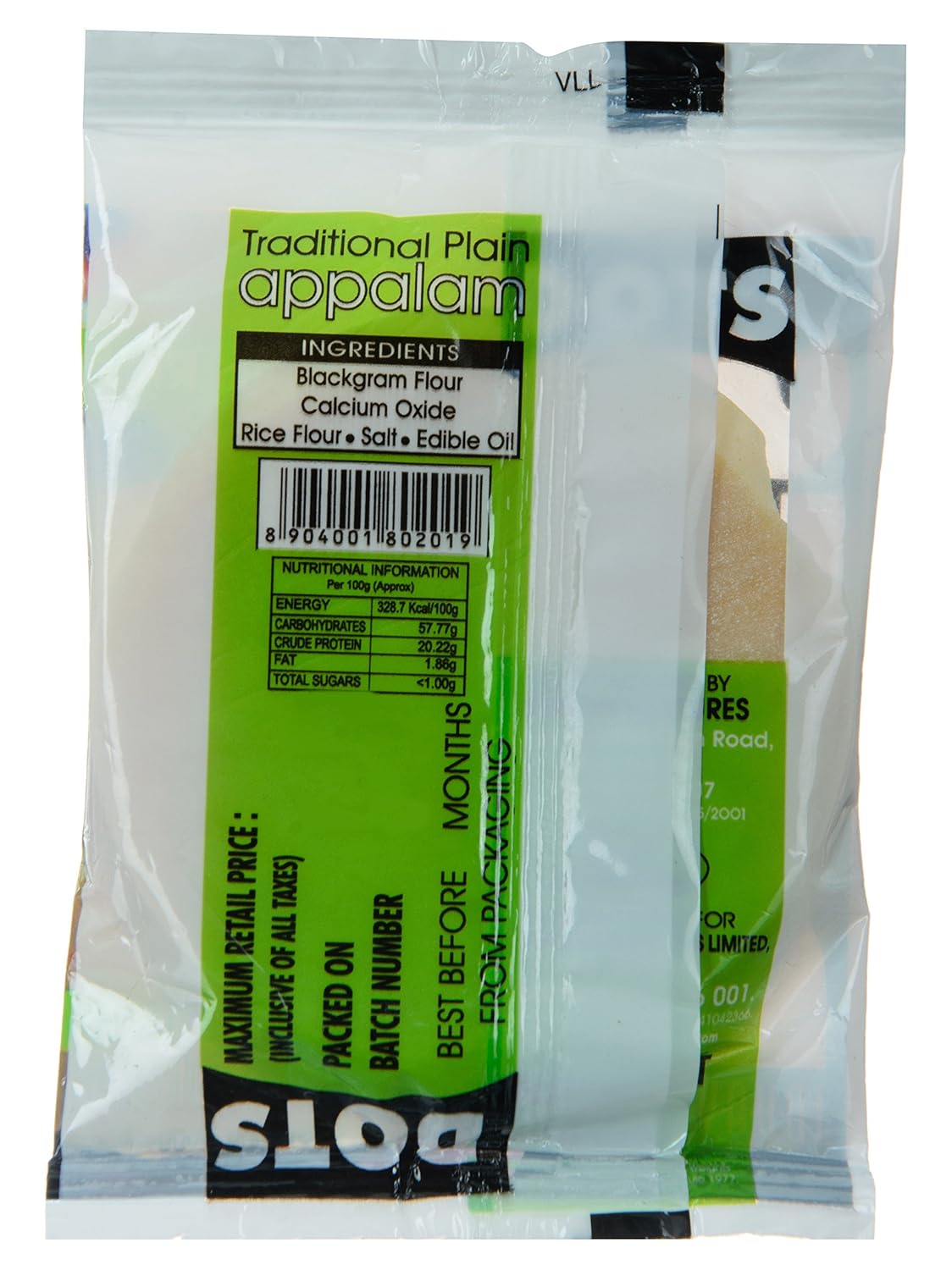 IDHAYAM Dots Appalam is the preferred snack with meal at every household. The crunchy and munchy snack is a must in every Indian home. Made of pure and clean black gram, Dots Appalam is protein rich and hygienic