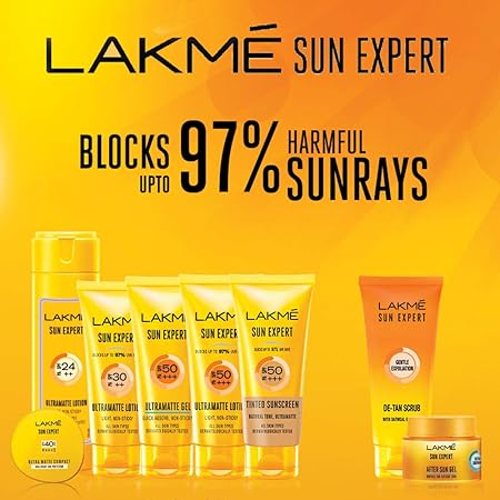 Lakme Sun Expert – your daily sunscreen lotion which is light enough to be used all year round. It contains cucumber, lemongrass, Vitamin B3 and has been tested by dermatologists. Suitable for all skin types – this lightweight lotion provides broad-spectrum UV protection.