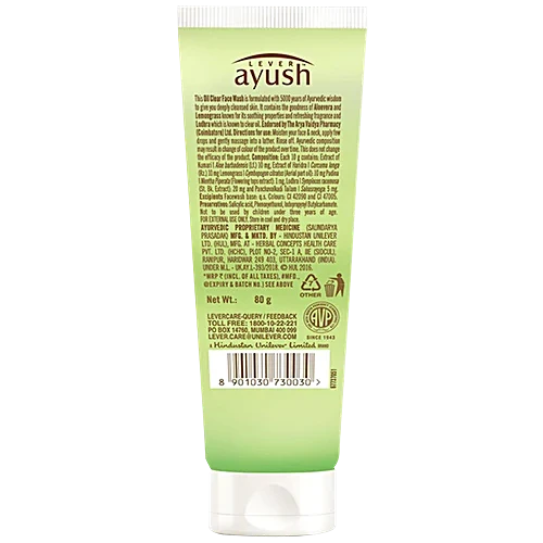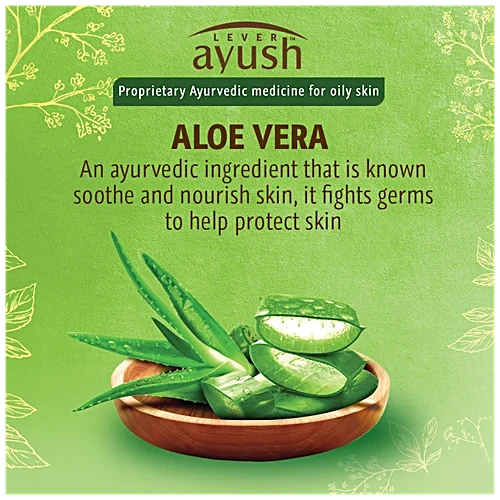 Deeply cleanse and remove excess oil with Oil Clear Aloe Vera Face Wash For clear and fresh skin Aloe Vera: Used in Ayurveda for its medicinal properties, Aloe Vera is a natural cooling agent that leaves a nourishing and soothing effect on the skin. Lemongrass: Anti-inflammatory in nature, Lemongrass is an antibacterial herb known for imparting freshness and a refreshing fragrance. Lodhra: It is a unique herb which is known to have oil-clearing properties and leaves skin with a pleasant scent and a fresh, supple feel. Deeply cleanses and removes excess oil from skin Made from 5000 years old Ayurvedic recipes Co-created with AVP Arya Vaidya Pharmacy World’s leading Ayurvedic Institution LEVER Ayush Aloe Vera Face Wash is created with the unique blend of Aloe Vera and Lemongrass, as prescribed in the granthas.