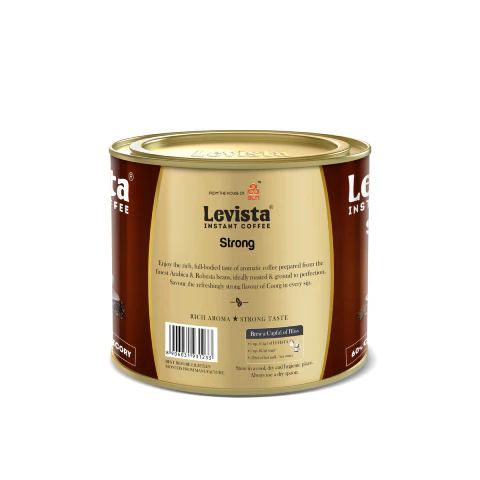• Introducing our Levista Strong 50 g Can coffee powder made from high-quality coffee beans and carefully crafted to bring the best flavour in every sip. The blend of 60% coffee and 40% chicory gives you an instant coffee fix.