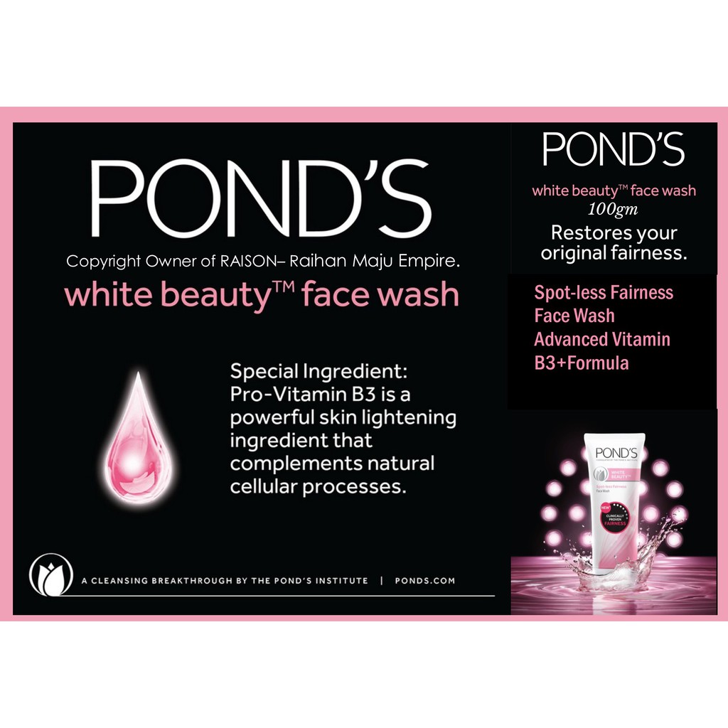 The Pond's White Beauty range is formulated with advanced pro-vitamin B3, and is clinically proven to reduce dark spots and combat multiple darkening problems. By lightening up millions of cells, Pond's White Beauty products lead to smoother, more radiant skin.