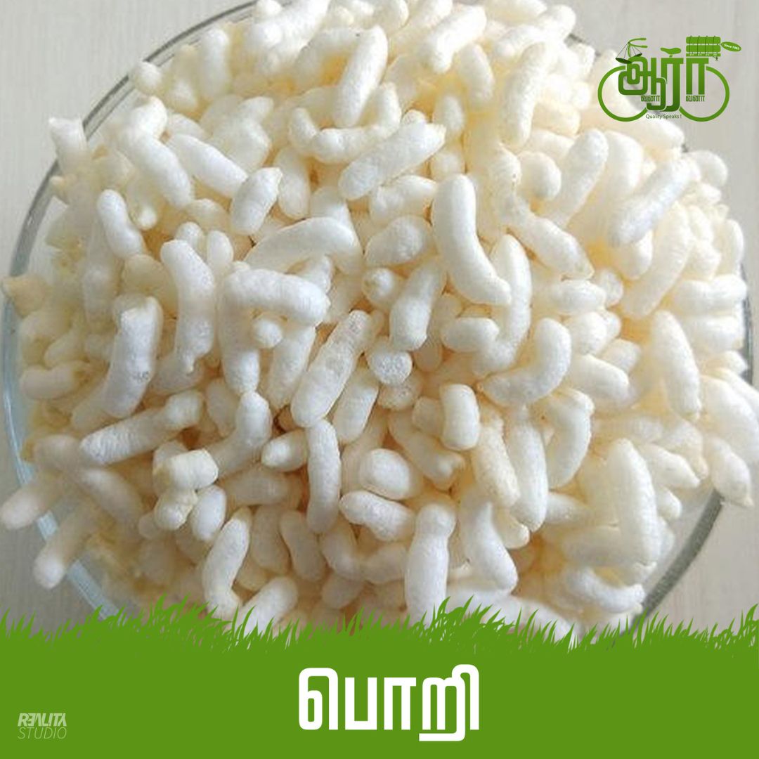Puffed rice (Pori) is a popular food among many people. Because it is high in fibre, it aids in the treatment of digestive problems such as indigestion, bloating, heartburn, diarrhoea, and peptic ulcers. Pori is good for weight loss because it is light and low in calories. This low-sodium puffed rice can help to lower blood pressure. A lot of people like karapori, masala pori, and bhel puri. பொரி பலரின் விருப்பமான சிற்றுண்டி உணவாக உள்ளது. நார்ச்சத்து நிறைந்த பொரியை உணவில் சேர்த்துக் கொள்வதன் மூலம் வயிற்றுக் கோளாறு, வீக்கம், நெஞ்செரிச்சல், வயிற்றுப்போக்கு, வயிற்றுப் புண் போன்ற குடல் கோளாறுகளை சரி செய்ய உதவுகிறது. இலேசாகவும், குறைந்த கலோரிகளை கொண்ட பொரி எடை இழப்புக்கு ஏற்றதாகும். குறைந்த சோடியம் மட்டுமே கொண்ட பொரியை சாப்பிடுவதன் மூலம் இரத்த அழுத்த அளவை கட்டுக்குள் வைக்க முடியும். பொரியில் செய்யும் காரப்பொரி, மசாலா பொரி, பேல் பூரி போன்றவை பலருக்கும் விருப்பமானவை.