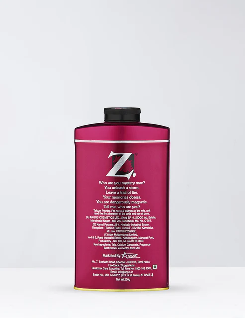 Z Magnetism Men Talcum Powder Inspired from global trends, Z with its transparent, sheer fragrance leaves a lasting, lingering impact. This unique fragrance is made of spicy, woody and floral notes and although positioned as a male centric fragrance, it appeals to men and women alike.