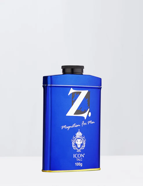 Z Talc Icon Talcum Powder Inspired from global trends, Z with its transparent, sheer fragrance leaves a lasting, lingering impact. This unique fragrance is made of spicy, woody and floral notes and although positioned as a male centric fragrance, it appeals to men and women alike.