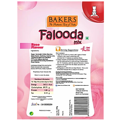 2. Elevate your dessert game effortlessly with Bakers Rose Falooda Mix Powder. Crafted with premium ingredients, this mix delivers a perfect balance of sweetness and floral notes, ensuring a satisfying treat every time you crave it.