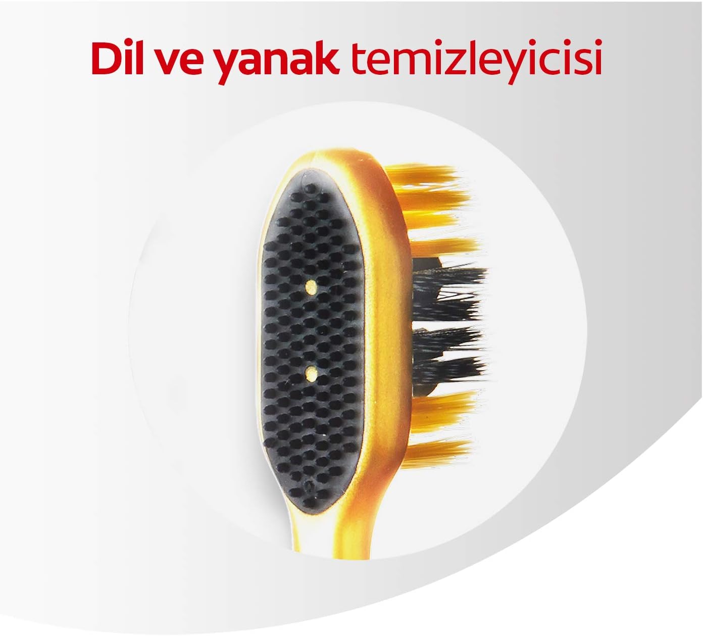 Bring home the ‘gold’ standard in toothbrushes with Colgate 360 Charcoal Gold. Its charcoal infused soft bristles work to remove bacteria and provide deep yet gentle cleaning. With specially designed 17x slimmer tip bristles, it reaches deeper in between the teeth and effectively cleans along the gum line for an overall deep mouth clean. Its spiral bristles help remove stains for brighter teeth every day.
