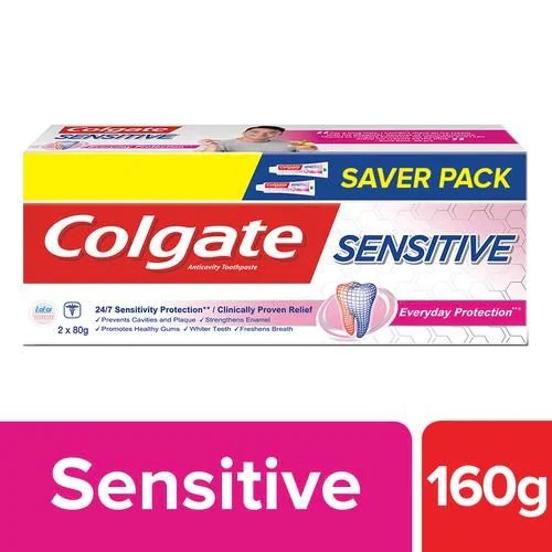 Colgate Sensitive soothes and builds a protective shield around the teeth providing both fast relief from sudden shocks of pain and long term sensitivity protection with regular use. Colgate Sensitive Everyday Protection Toothpaste provides fast relief within two weeks when used 2 times a day.