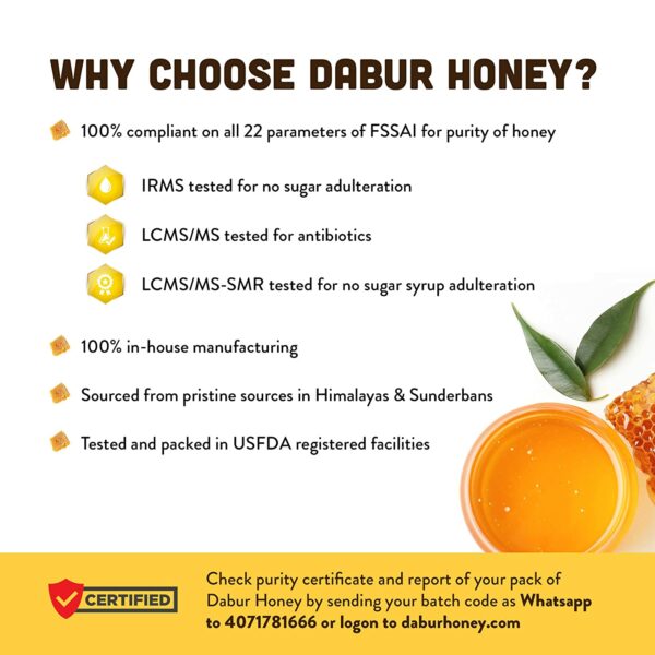 Benefit from the goodness of honey with a daily dose of Dabur Honey and treat your mind, body and soul to a healthier lifestyle. Take your first step towards building your overall positive health with the many benefits of Honey today!
