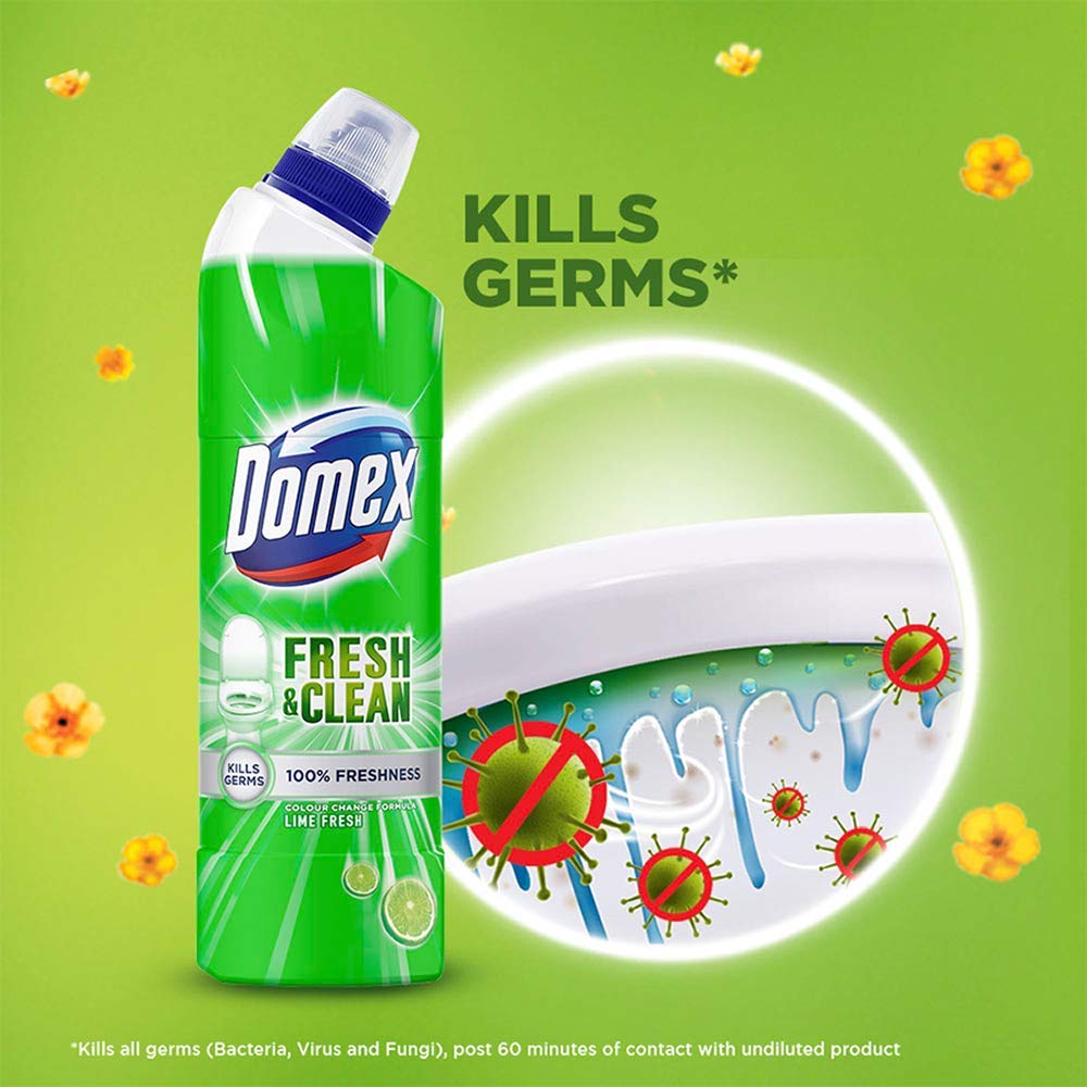 Domex Lime Fresh Toilet Cleaner with active green formula kills all germs including bacteria, virus and fungi which live on the surfaces in your toilet. … Domex Disinfectant Expert Toilet Cleaner is recommended for daily use to keep your toilet clean, disinfected, fresh and safe.
