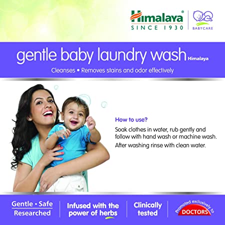 Himalaya Gentle Baby Laundry Wash is specially formulated with naturally derived cleansing agents and herbs with antibacterial property that are effective yet gentle on baby’s clothes. Enriched with Soapnut extracts, well-known for stain removal properties, this formulation is tough on stains and odor. The antibacterial properties of Neem, Geranium, and Lemon effectively help sanitize baby’s clothes. This laundry wash maintains the softness of the fabric and has a fresh and mild fragrance post wash, without leaving detergent residue. Our biodegradable Baby Laundry Wash is gentle on your baby’s clothes and gentle on the environment too!