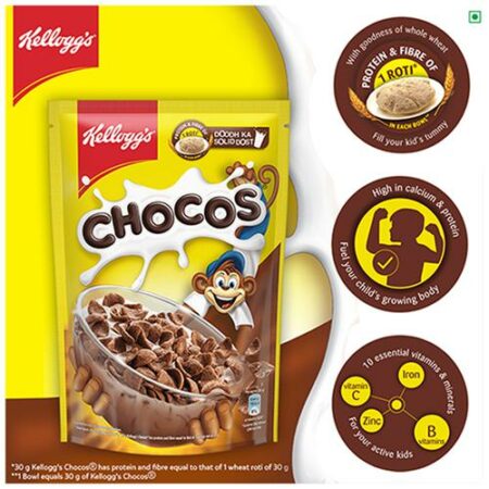 Kellogg’s Chocos is a wheat-based cereal with the goodness of wholegrain and yummy chocolaty taste. One Serve (30g) of Kellogg’s Chocos has protein and fibre equal to that of 1 wheat roti of 30g.