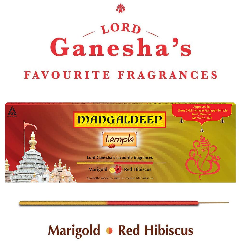 Bring home the divinity of temple. Mangaldeep presents 'Mangaldeep Temple - Lord Ganesha's favourite fragrances' - agarbattis inspired by our mission to enable every Indian's pursuit of devotion. The ingredients are inspired by the divine flower offerings made to Lord Ganesha. Furthermore, each agarbatti features an innovative 'dual fragrance' - Marigold in one half; Red Hibiscus in the other half that is considered to be God's Favourite. Each agarbatti is lovingly crafted by the rural women in Maharashtra, working under the aegis at self-help groups as an expression of their deep faith and love in God. Light the agarbattis and bring home the divinity of the temple.