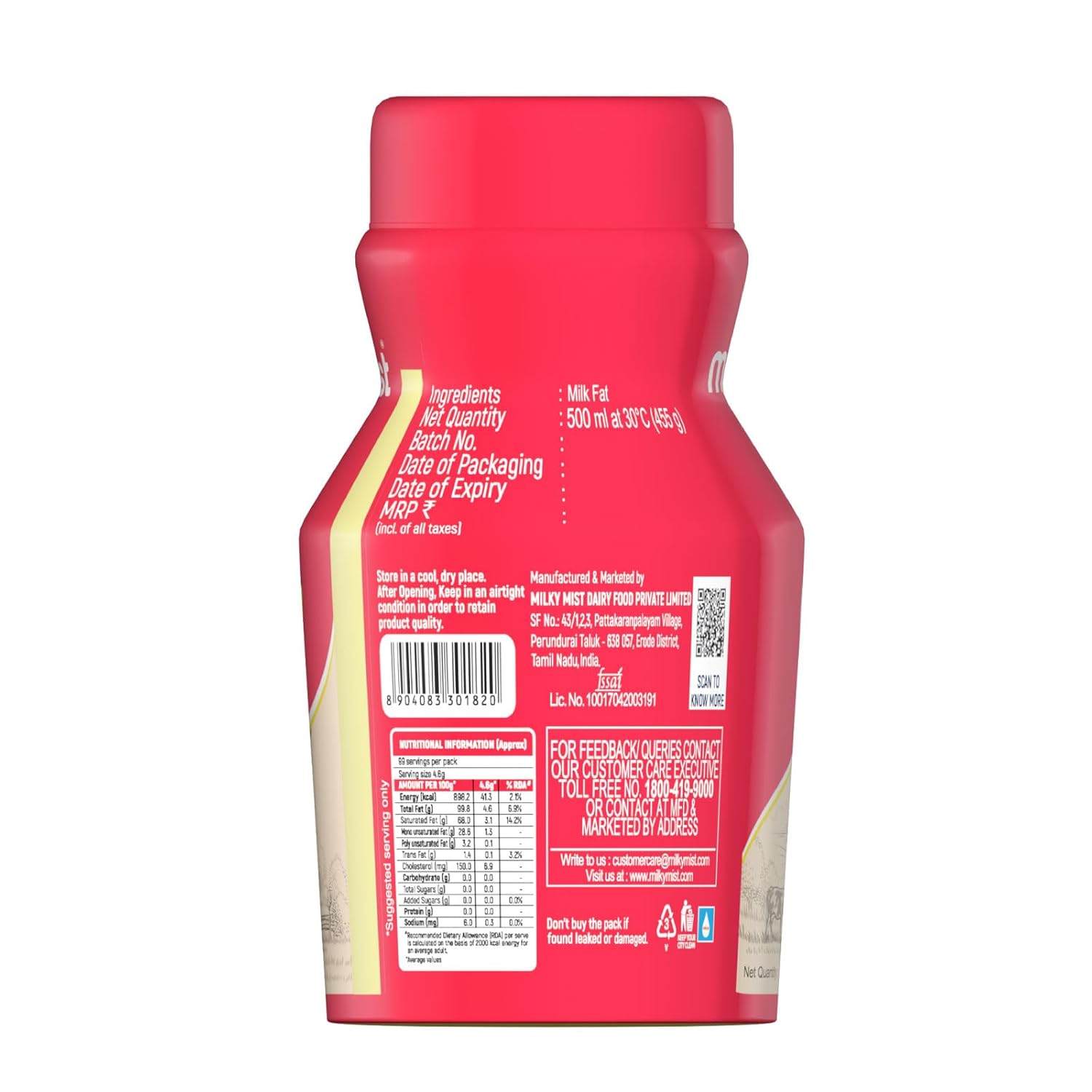 Ghee contains a minimum of 99.7% fat and not more than 0.3% moisture. Milky Mist Cow Ghee is an AGMARK product which is pure, clarified fat derived solely from milk, desi butter or cream to which no artificial colouring is added. Ghee is an essential part of the daily diet of most Indians. If you are looking for pure desi ghee in India, Milky Mist AGMARK ghee offers you the best choice. Our range of pure cow ghee is just what you need to complete your everyday meal. Our AGMARK Ghee consists of monounsaturated Omega 3s which supports a healthy cardiovascular system. Our Milky Mist AGMARK Ghee is used for the preparation of mouthwatering savoury, Indian curry and traditional desserts.