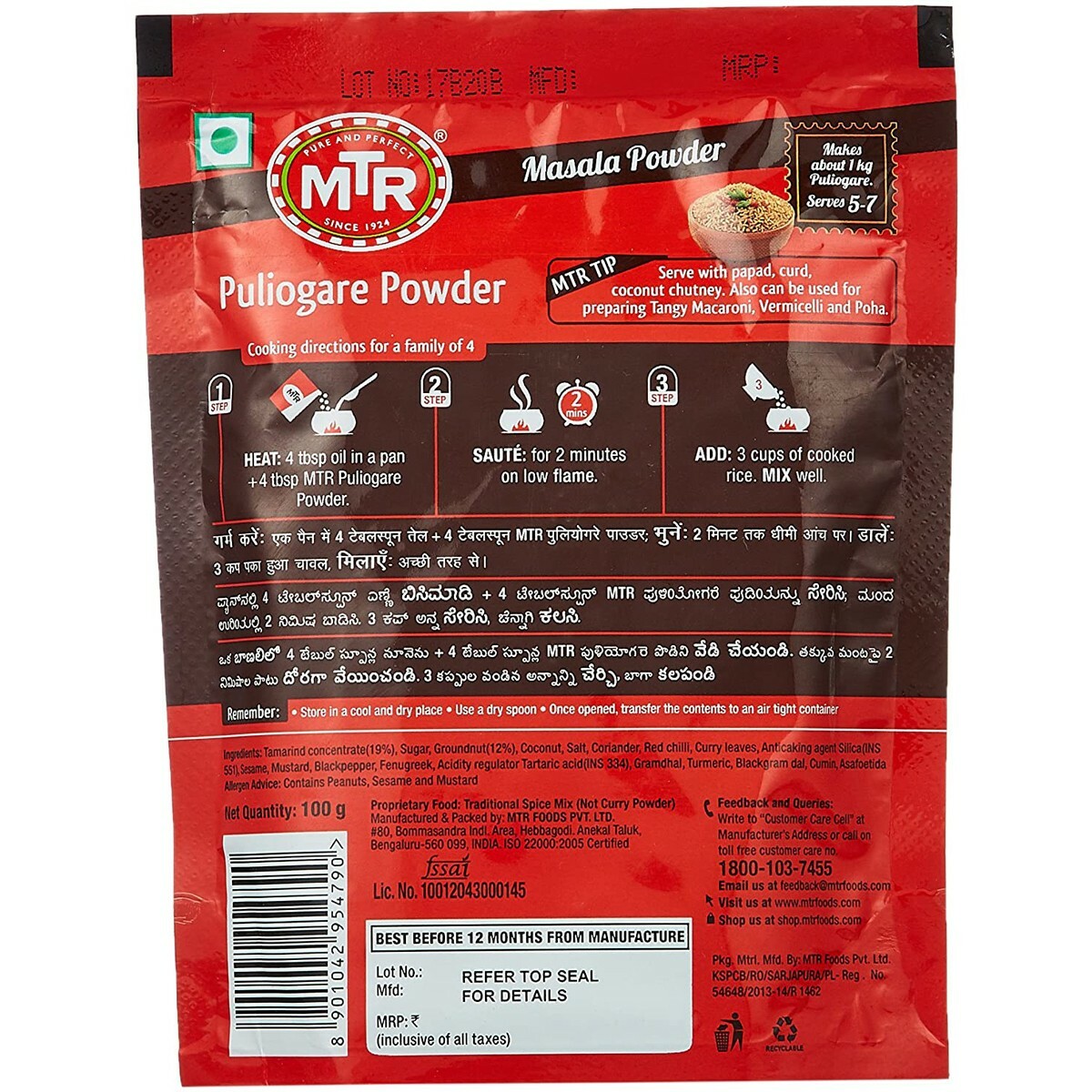 MTR Puliogare Powder is completed of the superiority of well ingredients. Puliyogare or Tamarind Rice is a sharp spicy South Indian Rice range, which is identified for its long shelf life and great journey food. It will give very peppery and tangy flavour to the rice. This dish is regularly served with chutneys, pappadums, and pickles.