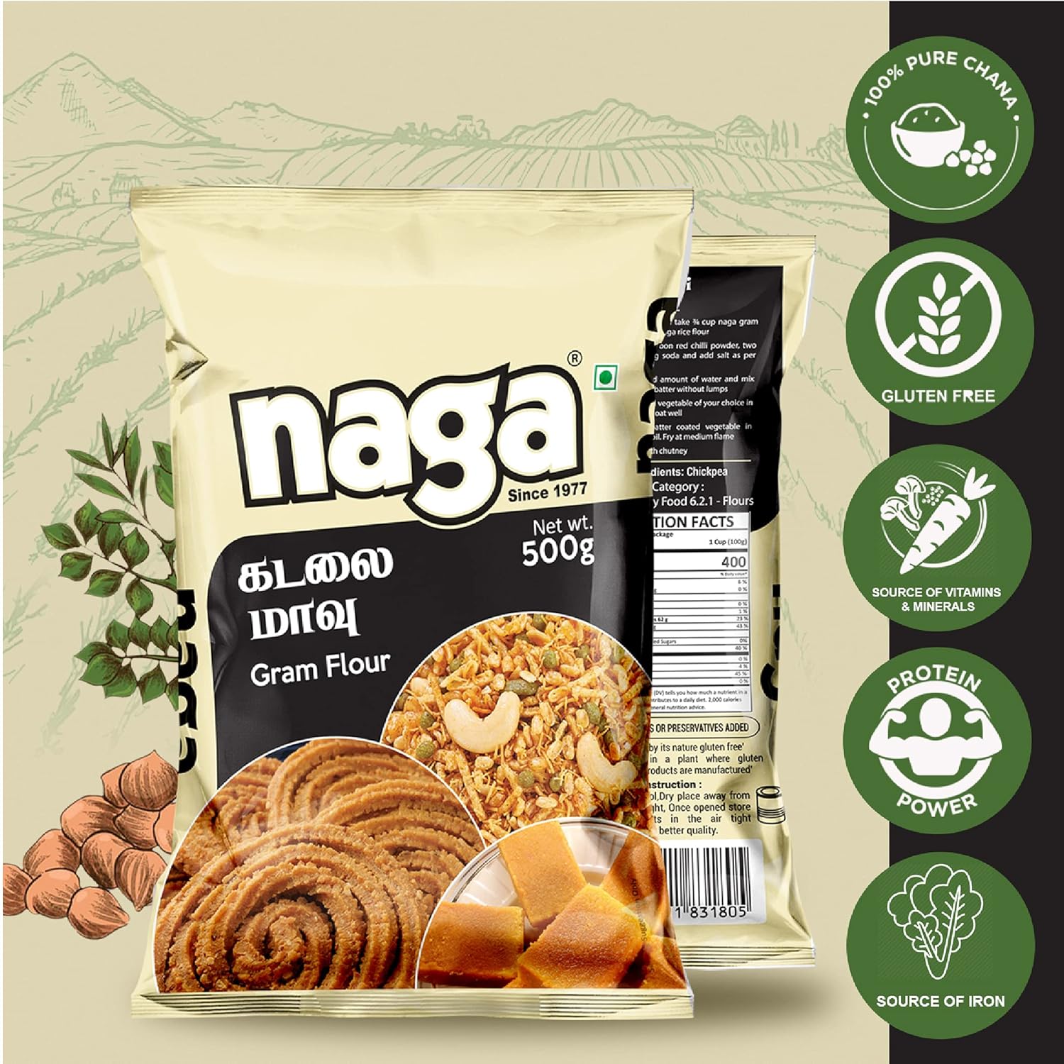 Naga Gram Flour contains healthy unsaturated fats & are a reliable source of fiber. Ideal for mixing with flour for rotis & parathas or indulging your sweet tooth, this versatile flour is a staple in Indian homes. This is made with 100% chana dal and is coarsely textured to give a supreme cooking experience every time. It is packaged with the utmost care, maintaining hygiene, aroma, and purity of the besan, therefore retaining its taste. Proper steps are taken to ensure that hygiene of the besan is maintained during the packaging process.