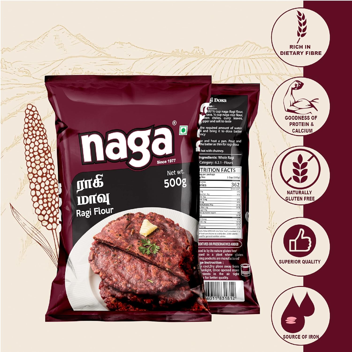 Naga Ragi flour is made from fresh and natural Ragi, which is also known as finger millet. The processing of Naga Ragi flour is done by highly professional people with latest and hygienic technologies. This flour has high nutritional values rich in protein and contains essential minerals, carbohydrates, calcium, and fibre. Ragi is an annual cereal, grown in many parts of India, from which the Ragi Flour is prepared. Ragi is used in many cooking preparations in the southern parts of India, especially Maharashtra, Goa, Karnataka, etc. Its flour is used to prepare rotis that are served with vegetables. Ragi Flour is good for improving digestibility and high in nutritional values. Ragi Flour is good for improving digestibility and high in nutritional values. Contains minerals, vitamins, and natural fibres. Sprouted Ragi Flour can be used to make healthy porridge.