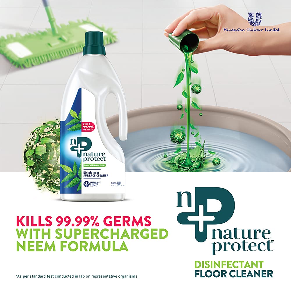 Maintaining hygiene at all times has become more important than ever, and more and more people are looking for convenient methods to sanitize themselves and their environment. As hygienic practices become more frequent, the need for safer, naturally-derived yet powerful sanitizing products has also grown. Stay protected from contamination with Disinfectant Surface Cleaner by Nature Protect, a quality product by Hindustan Unilever Limited, the makers of Surf Excel and Lifebuoy. Neem extracts are known to have the power of 100 bio-actives with both anti-viral and anti-bacterial capabilities. Infused with neem extract Nature Protect Disinfectant Surface Cleaner helps in cleaning and 99.9% germ removal.