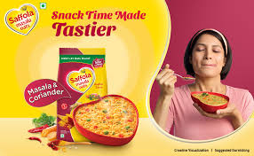 Saffola Masala Oats -(Masala Coriander) -Saffola Masala Oats in a variety of tasty recipes like Crispy Cutlets, Penne Pasta, or just as a delicious bowl of joy with crunchy toppings like namkeen, peanuts or crushed papad. Saffola Masala Oats is available in a range of lip-smacking flavours – Classic Masala for the classic masaledar experience