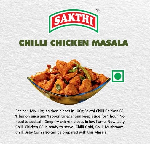 Sakthi Chilli Chicken 65 Masala uses the best quality spices and herbs in the preparation of masala. Use the masala to add a savouring taste and aroma which will make your Chilli Chicken 65 rich in taste. Grab this today to give a tantalizing and mouth-watering taste to your food.