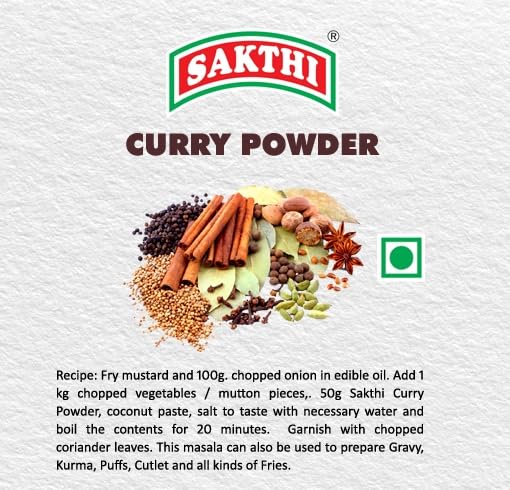 Sakthi Masala Curry powder is made from the purest of spices of our country. It is a delicate blends of numerous spices, just a rush of it a dish of vegetables and meat, poultry or fish is enough to convert it into a gourmet’s delight. This masala can also be used for Gravies, Kuruma, Puffs, Cutlet and all kinds of Fries.