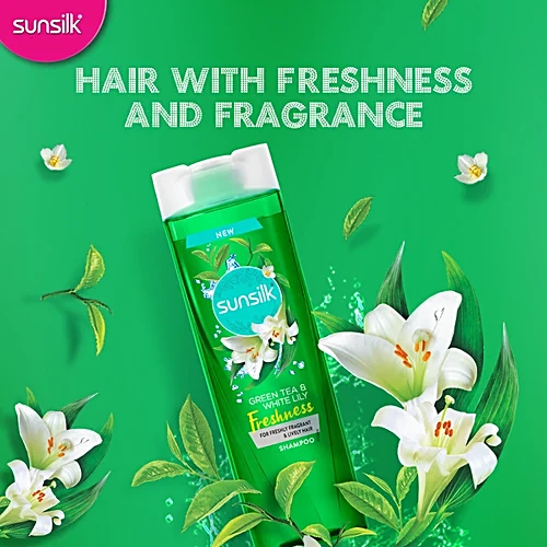 • Presenting New Sunsilk Green Tea and White Lily Freshness Shampoo. This newly launched shampoo by Sunsilk is infused with natural ingredients like green tea and white lily. Its exclusive formula nourishes your hair giving you long-lasting fragrance. It purifies your hair leaving it feeling fresh. Green tea is known for its antioxidant and refreshing properties. White lily has been cultivated since antiquity and is known for its exquisite scent.