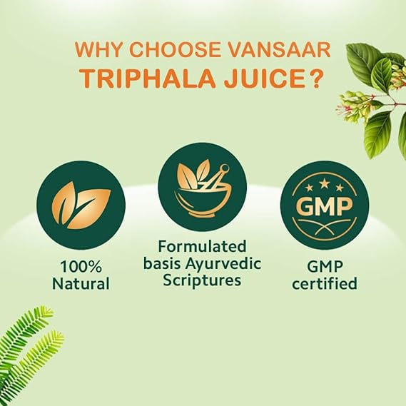 MAINTAINS A HEALTHY & STRONG DIGESTIVE SYSTEM: Triphala juice from Vansaar is a natural gut cleanse juice which helps treat major digestive issues from the root naturally and improve overall digestion and gut health. Including this digestive care juice in your daily routine helps improve digestion, facilitate easy bowel wellness, and maintain a healthy & strong digestive system naturally.