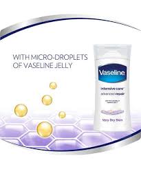 When your skin is very dry, it can tighten and develop micro-cracks in the upper layer, leading to irritation and itchiness. Vaseline Advanced Repair lotion relieves dryness from the first application with faster moisturization for visibly reduced dryness within 24 hours. It contains glycerine and petroleum jelly, which are great ingredients for naturally dry skin. Glycerine and micro-droplets of petroleum jelly work together to lock in moisture and provide intensive moisturization to help heal dry skin and repair the skins natural barriers.